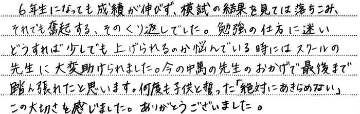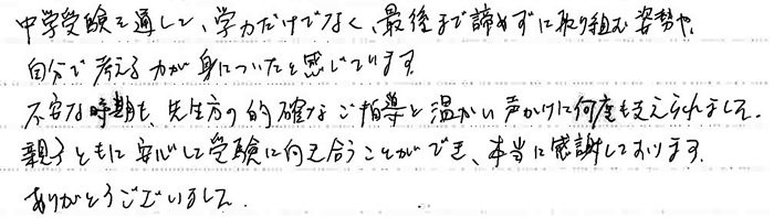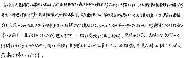 公立中高一貫校受検 2026年合格喜びの声(3)