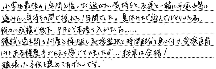 公立中高一貫校受検 2026年合格喜びの声(6)