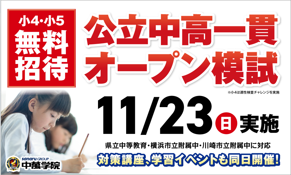 CG中萬学院によるオープン模試&対策講座を開催します。ぜひ適性検査型問題にチャレンジして、現状の学力測定と志望校合格に向けての学習計画にお役立てください。