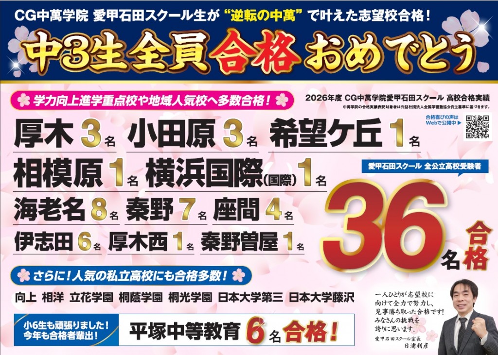 ~ 中萬学院 愛甲石田スクールでは、がんばる生徒を応援し続けます ~
