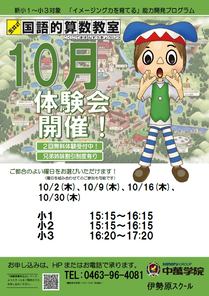 〔小5〕①9:00~12:00/②13:00~16:00