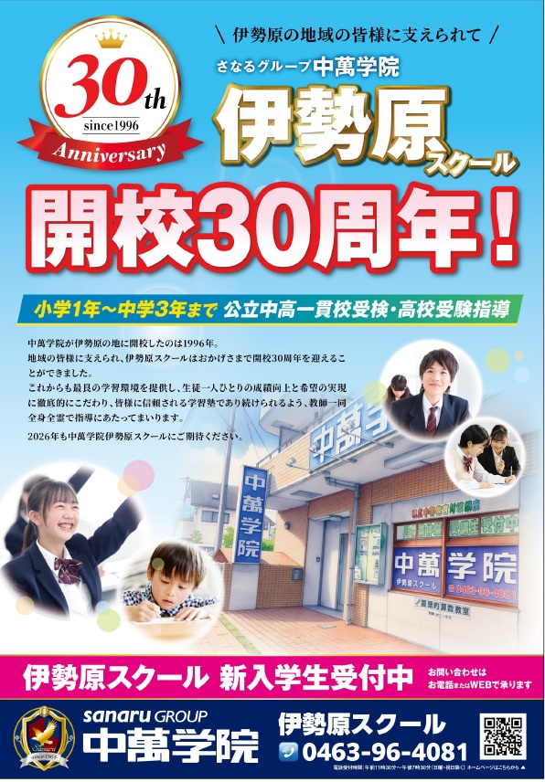 CG中萬学院伊勢原スクールはこのたび、開校30周年を迎えることができました。