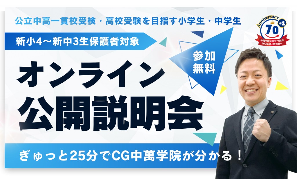CG中萬学院へのご入学をご検討されている方を対象に、オンライン公開説明会を開催します。