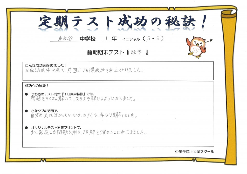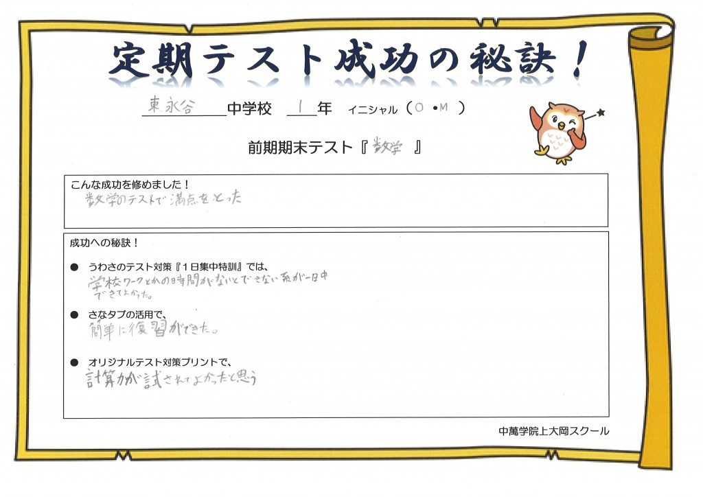 中萬のテスト対策で伸ばし続けた内申を武器につかみ取った合格!