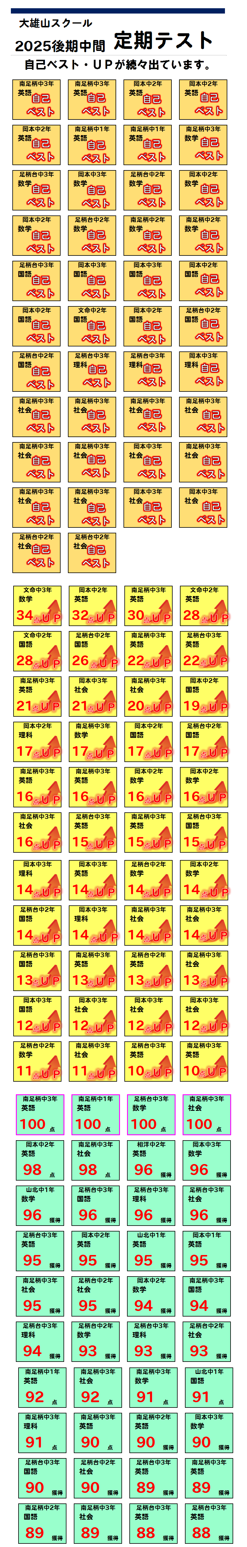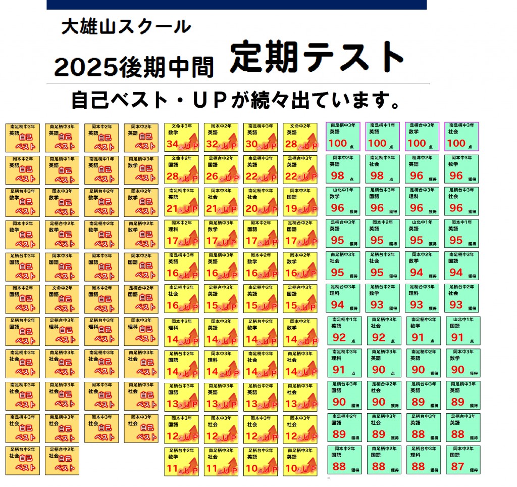 大雄山スクールは定期テスト・内申、そして高校入試で自己ベスト・・1段上を目指すサポートをしていきます。