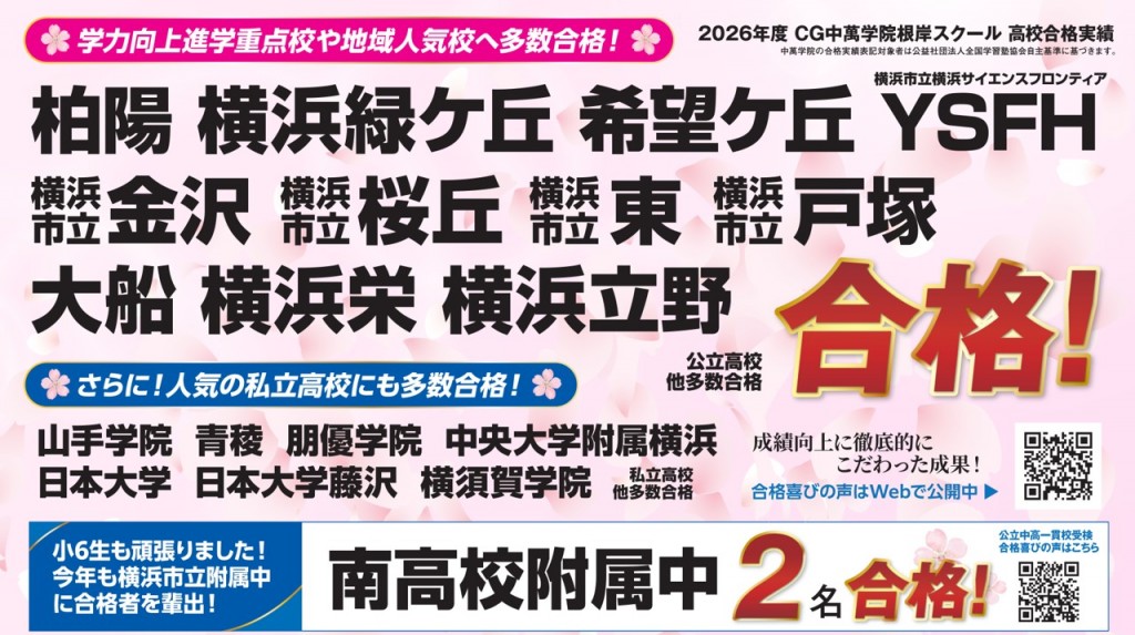 根岸スクールからも合格者が出ました!今後の指導にご期待ください。