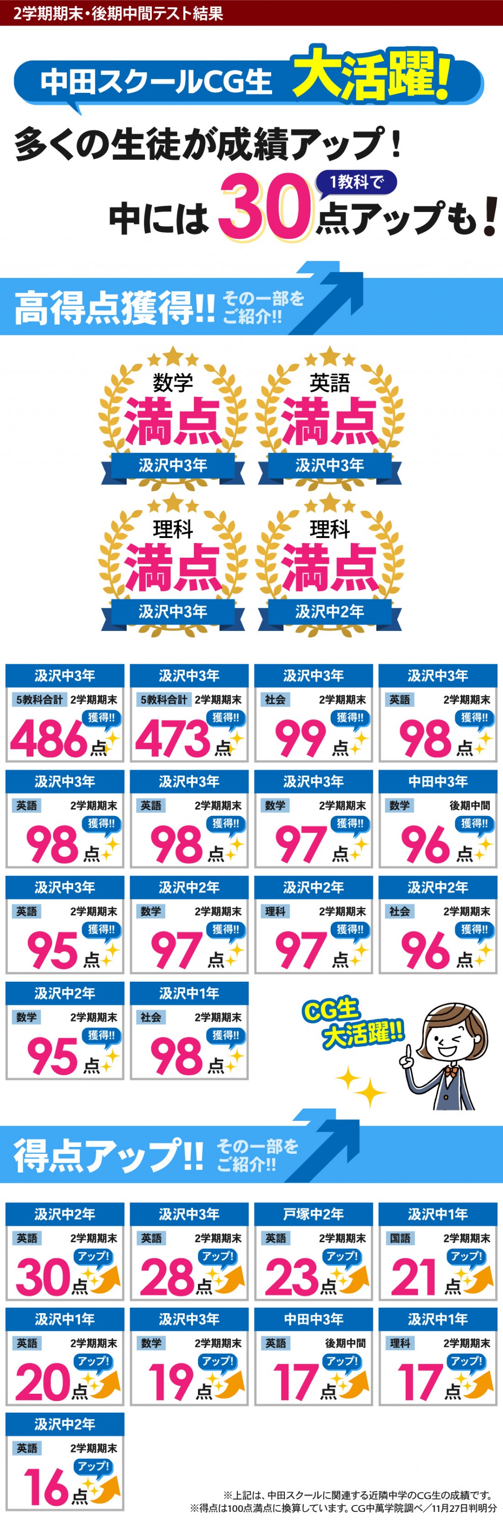 テスト対策を共に駆け抜けた中田スクール生から喜びの声を多く頂いています。