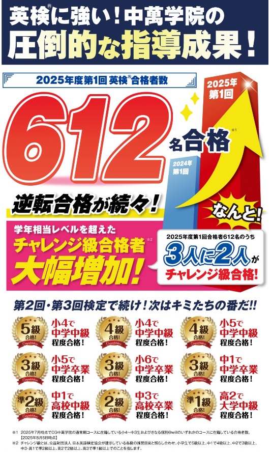 他にも中2で準2級合格が多数出ました。準2級の合格率90%以上!