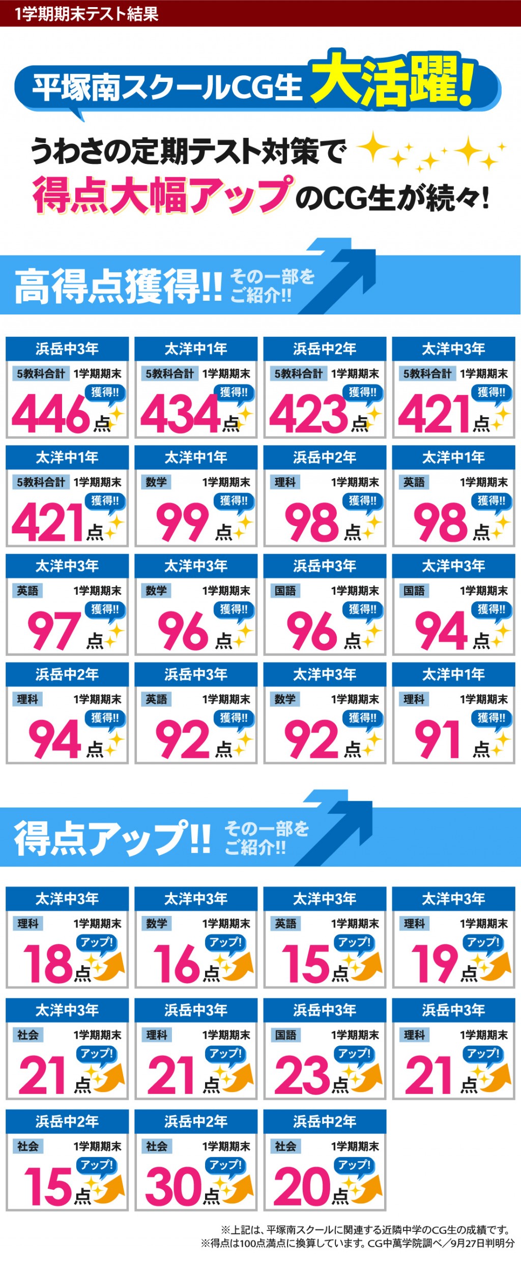 □浜岳中1 数学が前回から17点UP!