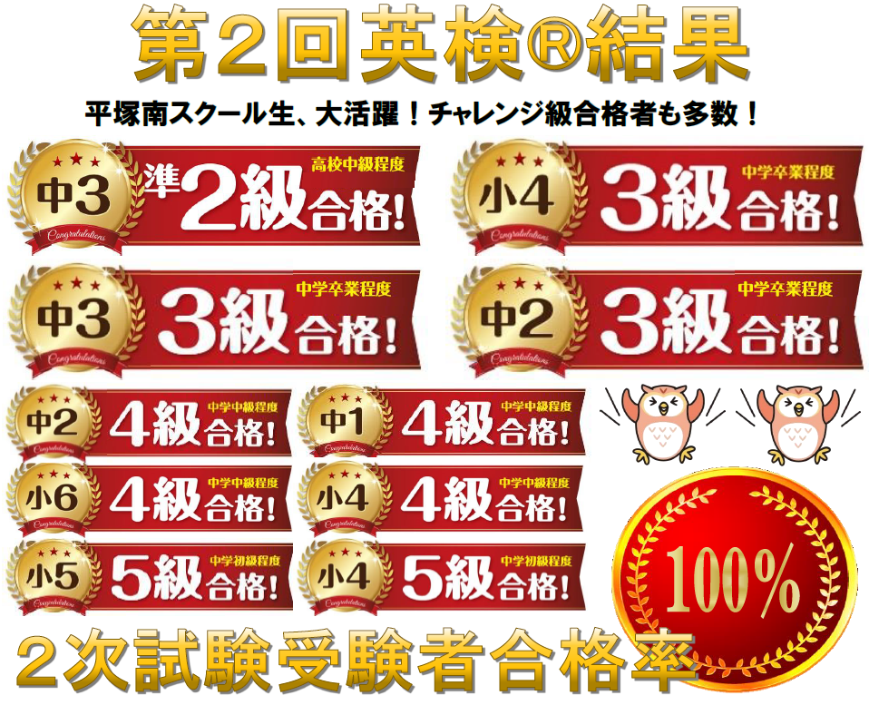 中学生で準2級・3級とチャレンジ級合格多数!