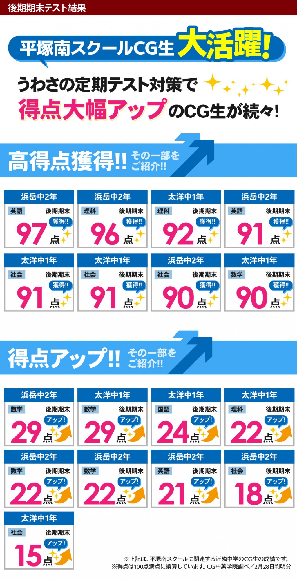 - (特集)学期末テストの成果と生徒からのUPの秘訣を更新中