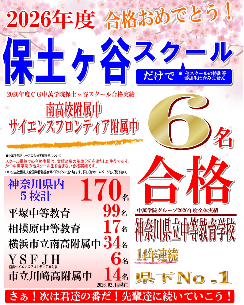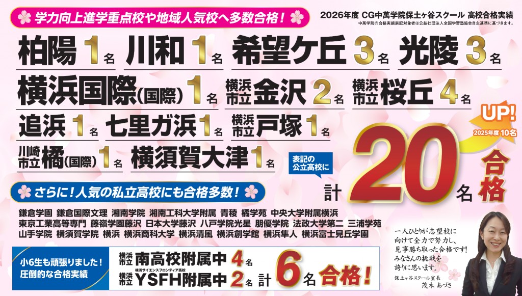 2026年度 保土ヶ谷スクール単体での高校入試合格実績になります。
