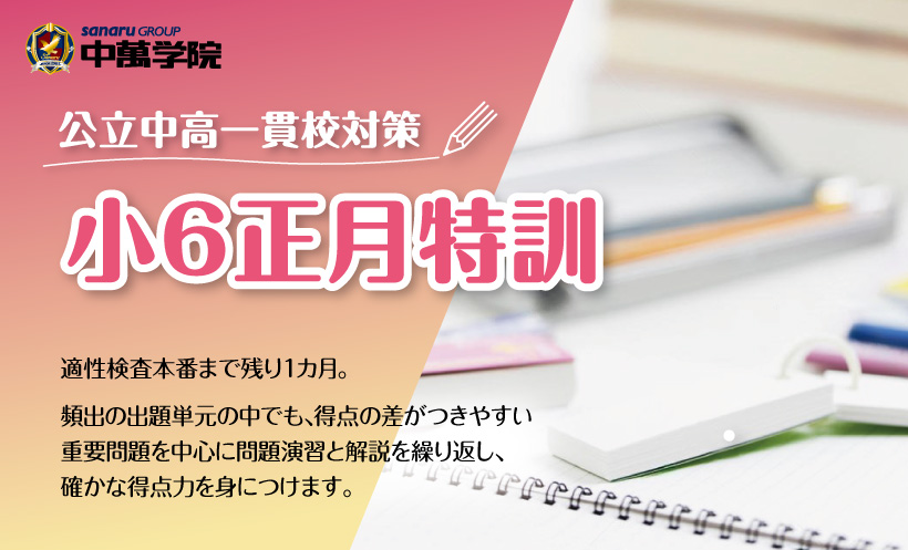 CG中萬学院では、横浜市立南高校附属中・横浜市立横浜サイエンスフロンティア高校附属中、川崎市立川崎高校附属中、県立相模原中等教育・県立平塚中等教育受検を目指す小5生・小6生を対象とした公立中高一貫校対策模試を随時実施しております。適性検査対策の学習指針に公立中高一貫校対策模試をご活用ください。