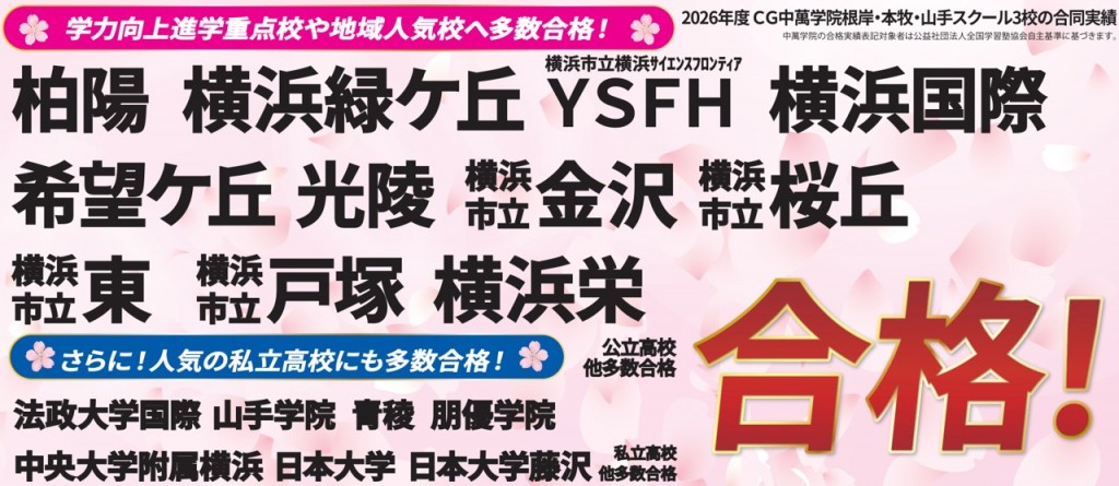 2026年度株式会社中萬学院(CG中萬学院・啓明館神奈川・CGパーソナル)の公立中高一貫校合格実績です。